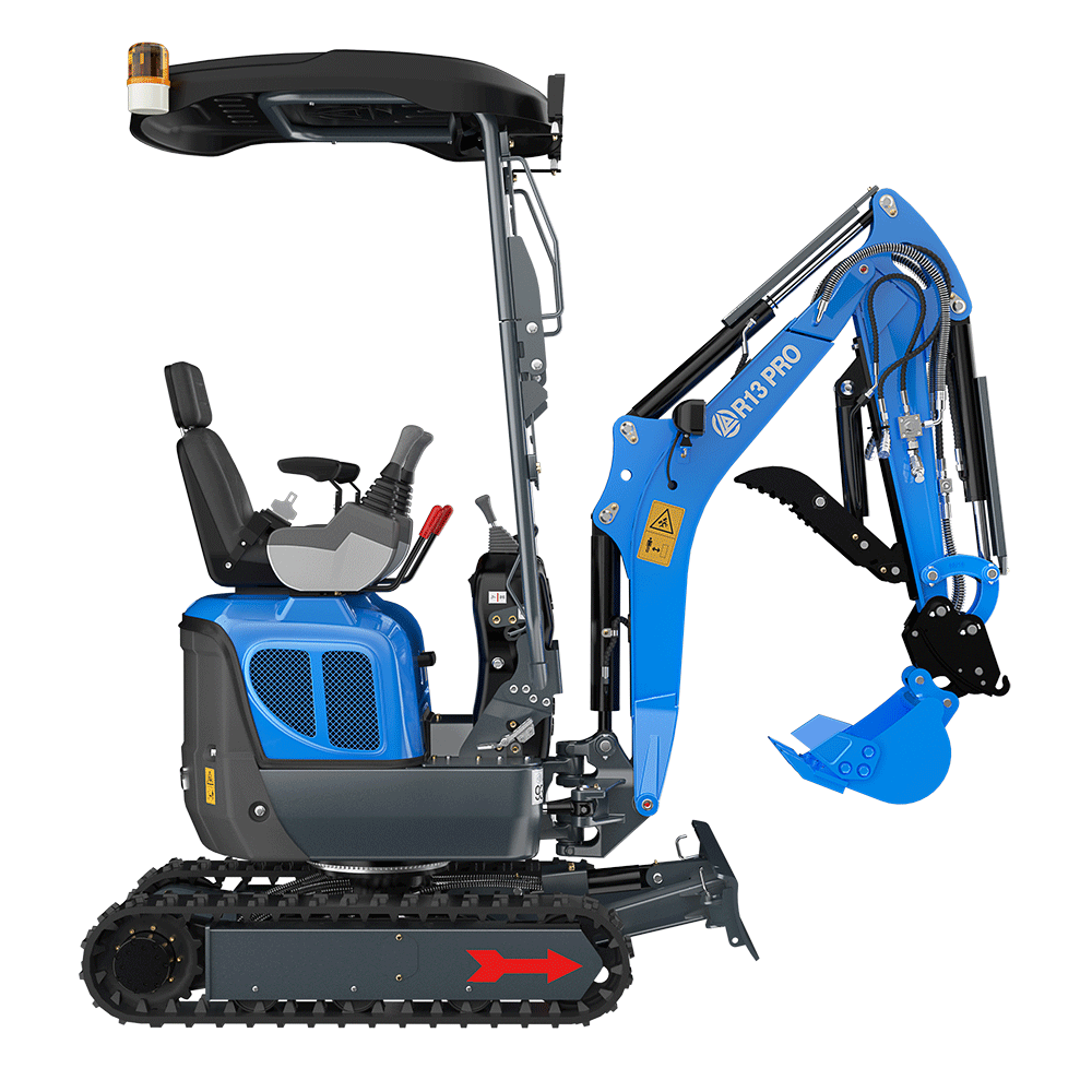 Комбинацията от R13 и двигател Kubota D722 предполага компактен и изцяло функционален мини багер. Проектиран за работа на огъване и в тесни пространства, мини багерът R13PRO значително подобрява комфорта на работа и ефективността на работа със своята специална телескопична характеристика на отклонение и двустранно пилотиране. Независимо дали става въпрос за градско строителство, озеленяване или домашен „Направи си сам“ проект, той може да се обработва без проблеми.